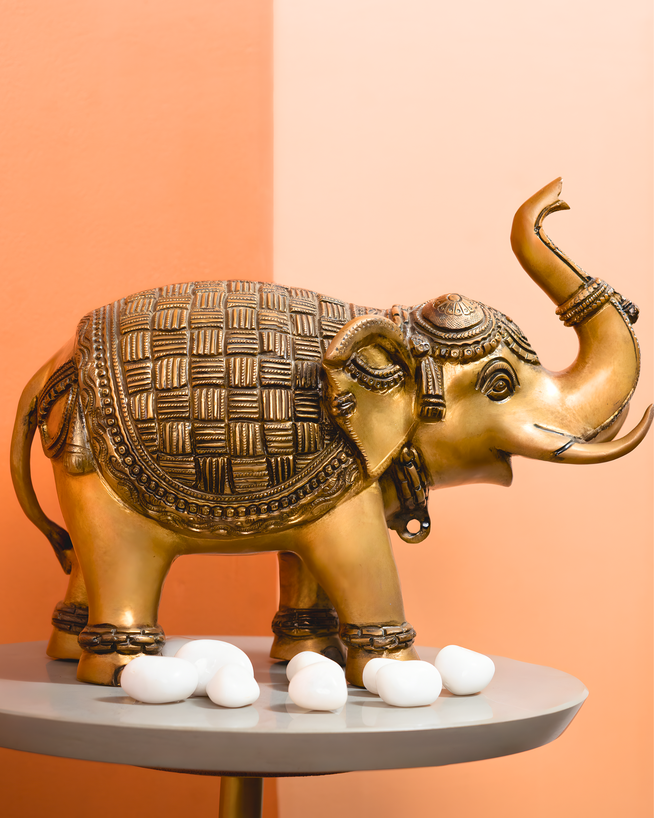 9" Decorative Brass Elephant Statue | Symbol of Wisdom & Prosperity