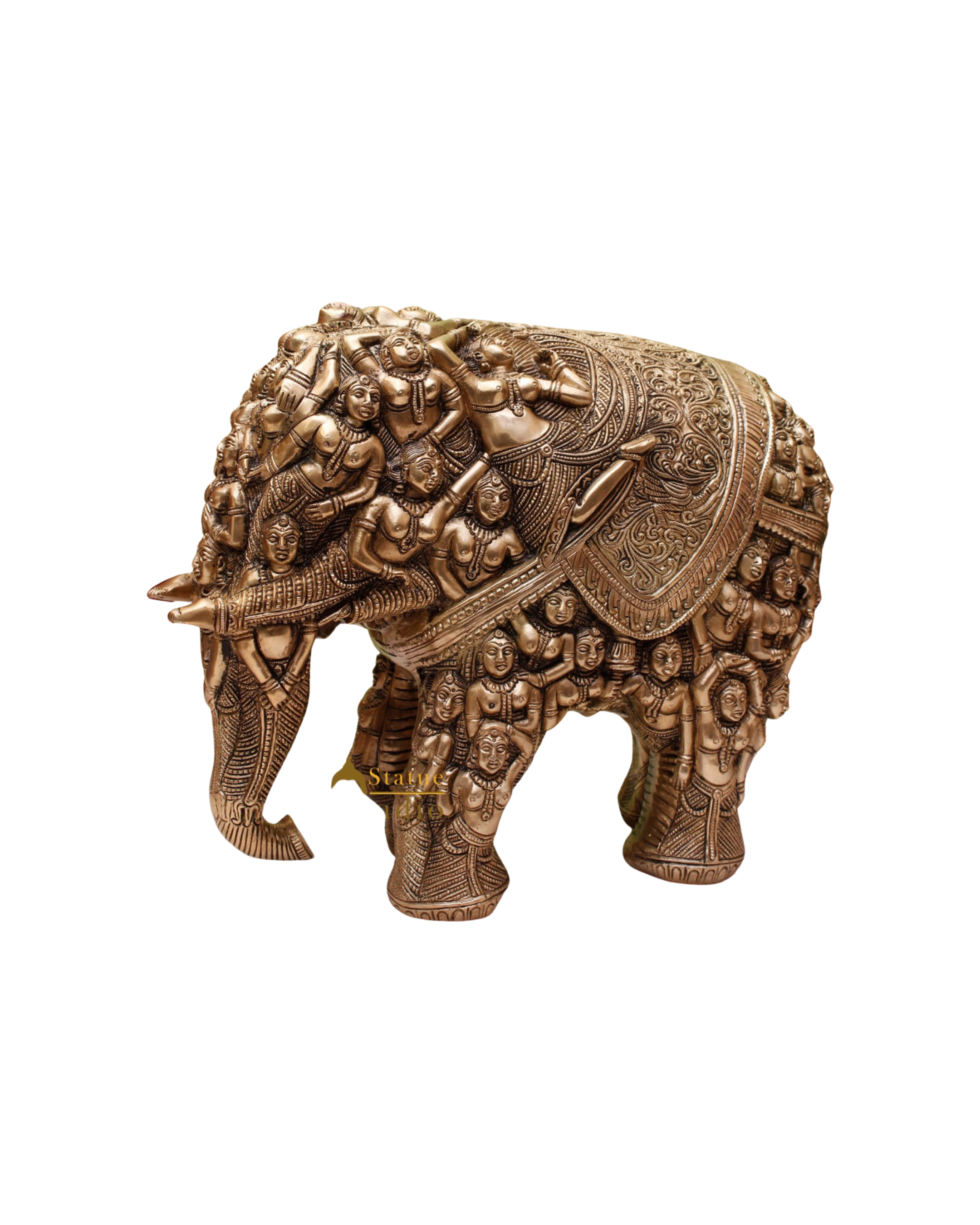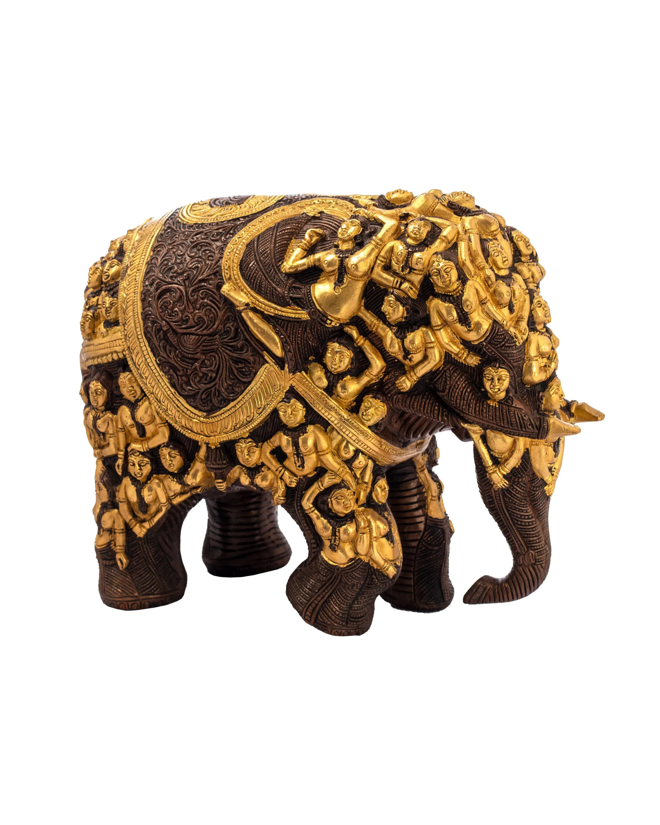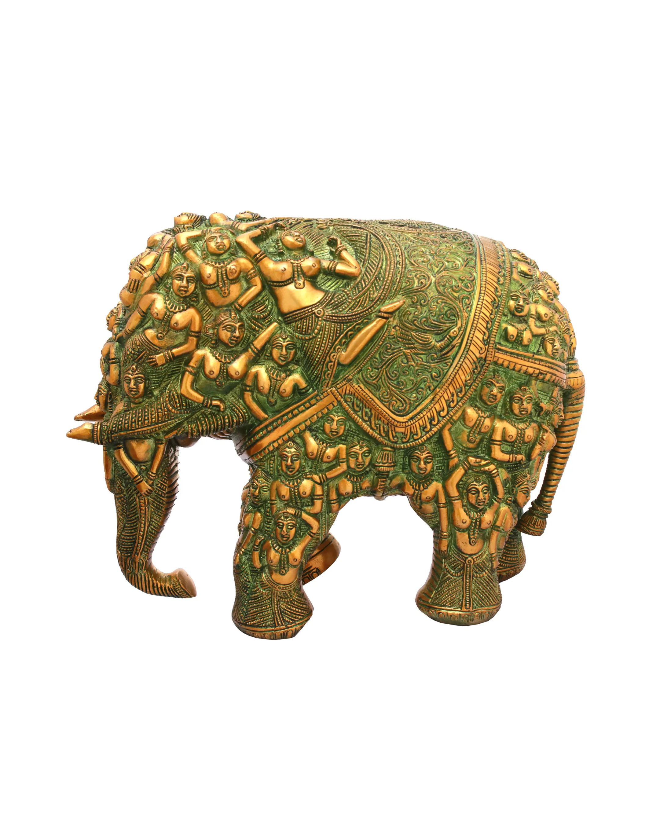 • Intricately sculpted figures of dancers and deities form the majestic elephant silhouette