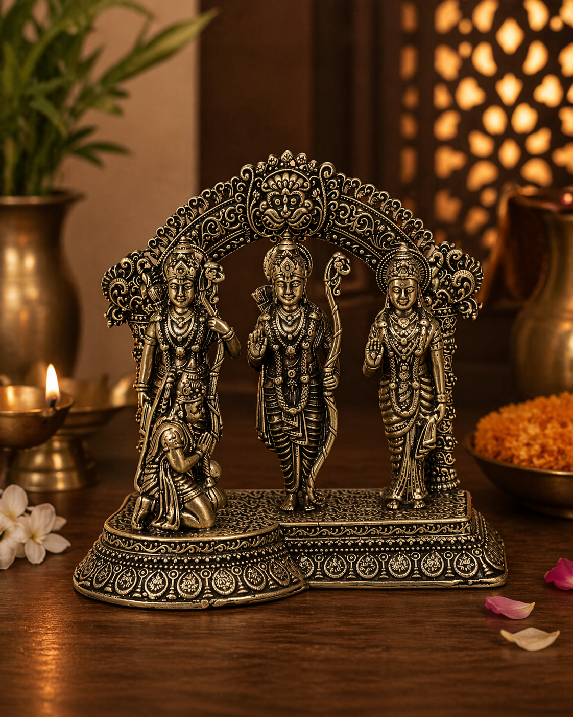• Intricate brass detailing reflecting traditional temple craftsmanship