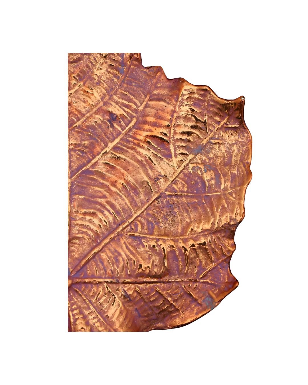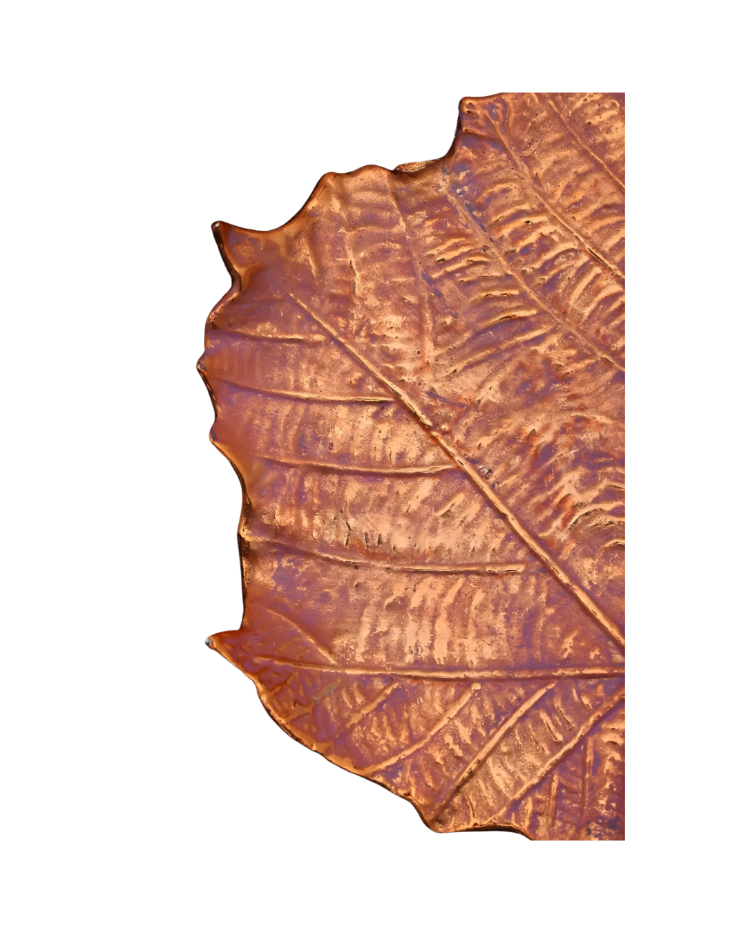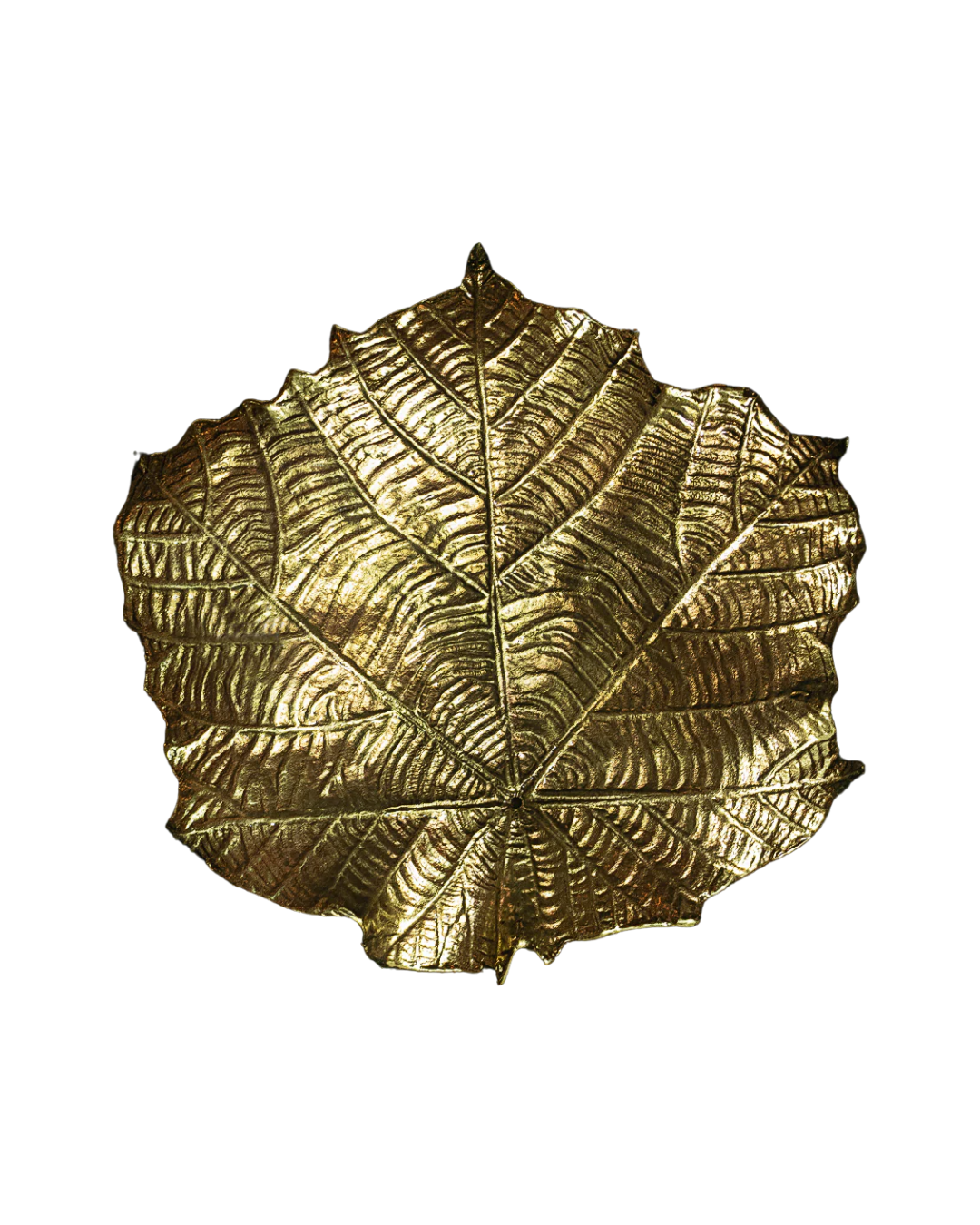 • Handcrafted brass tray with detailed leaf texture
